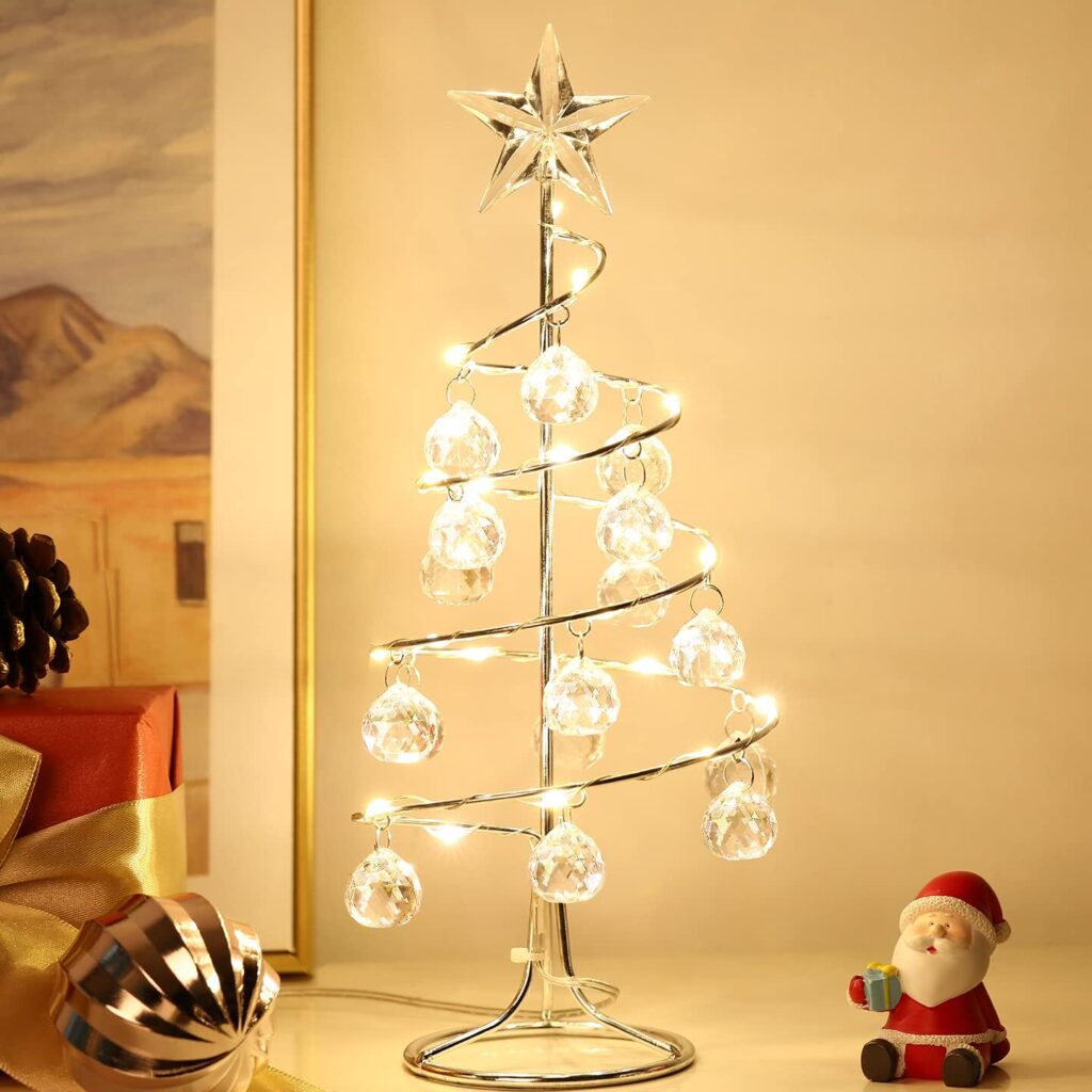 - Árbol de Navidad de Cristal Mini con Luces, Decoración para Fiestas y Regalos