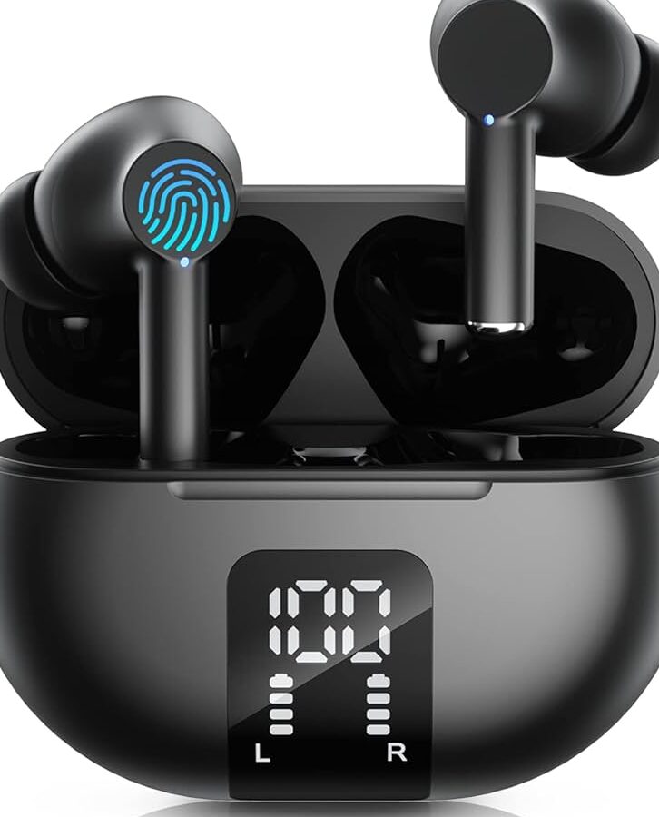 - Auriculares Inalámbricos Bluetooth 5.3 con Micrófono y Pantalla LED, Impermeables y con Reducción de Ruido